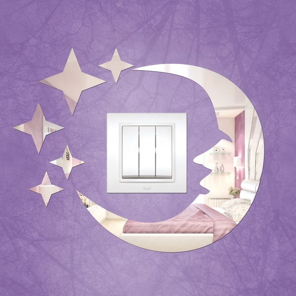 Зеркало предназначено для декорирования розеток и выключателей. Также возможно самостоятельное размещение. Крепится на любой ровной поверхности.